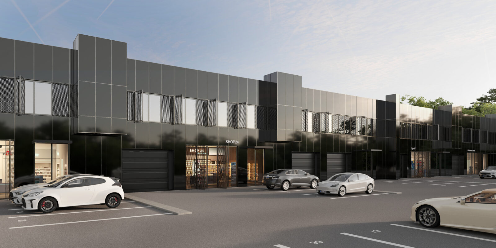 Další vybavení: LED osvětlení, reklamní pylon, dobíjecí stanice pro elektromobily