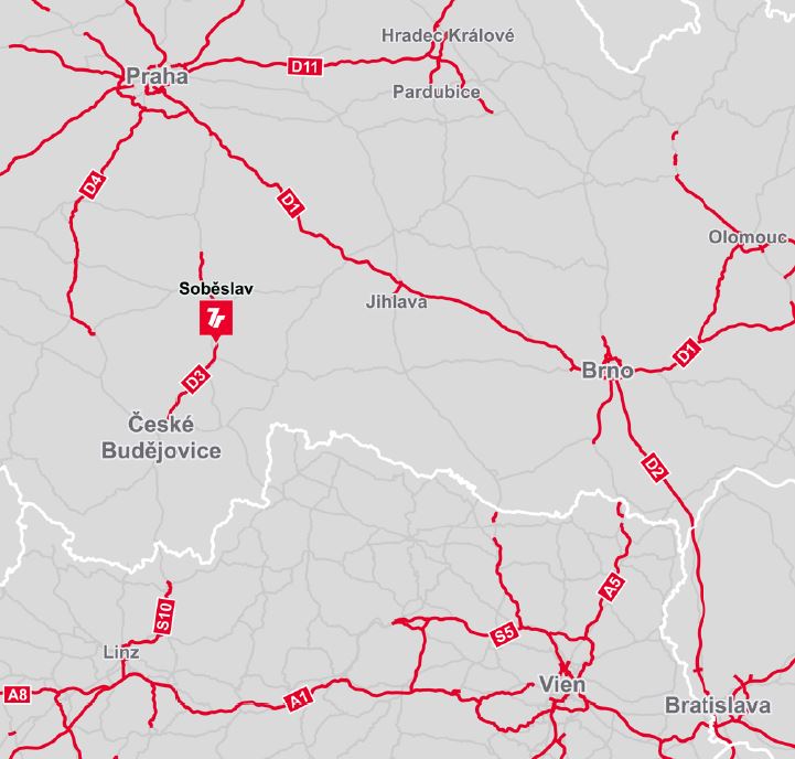 České Budějovice – 35 km (cca 17 minut jízdy)